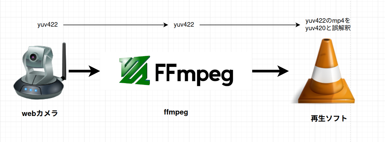 一般的にmp4ファイルのピクセルフォーマットはyuv420。結果、yuv422のmp4を再生しても、映像は正常に表示されない。