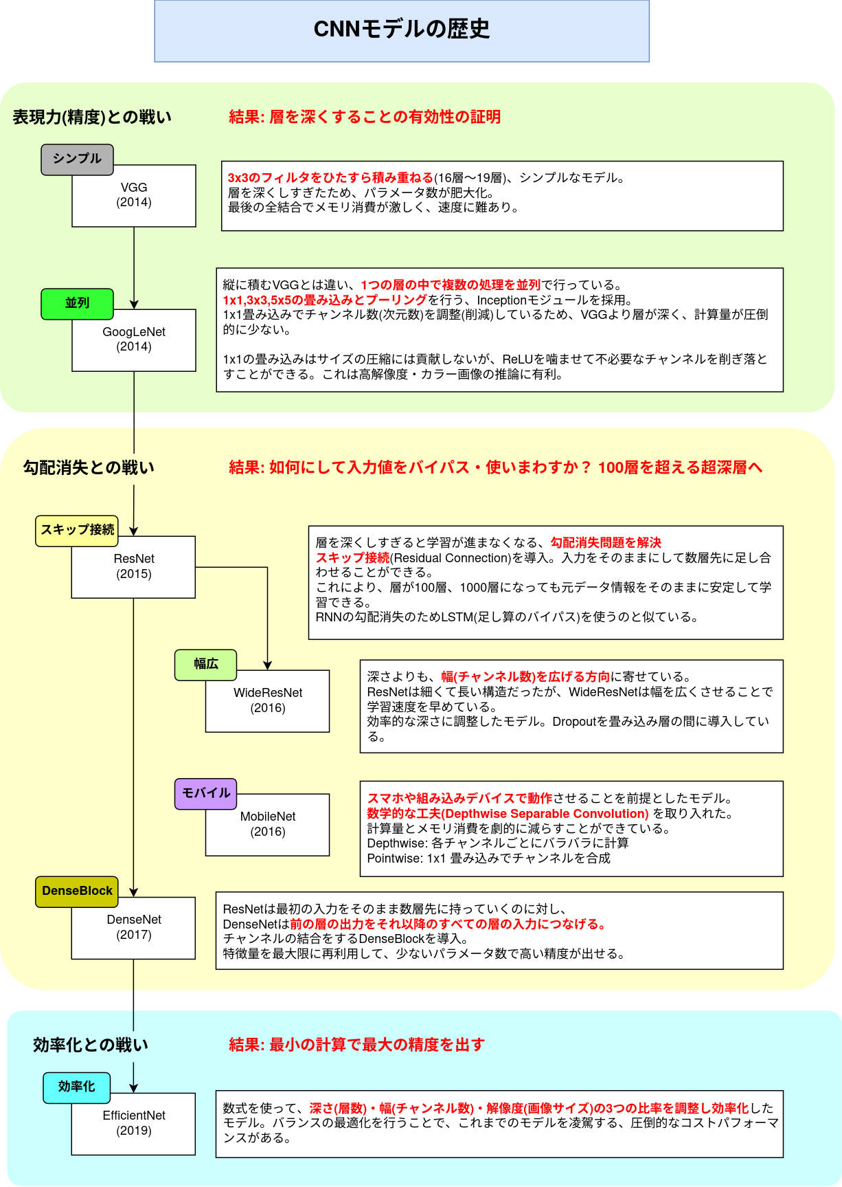 チャンネル数(特徴に対する視点)を増やすことで、層の深さよりも幅を広げている。
