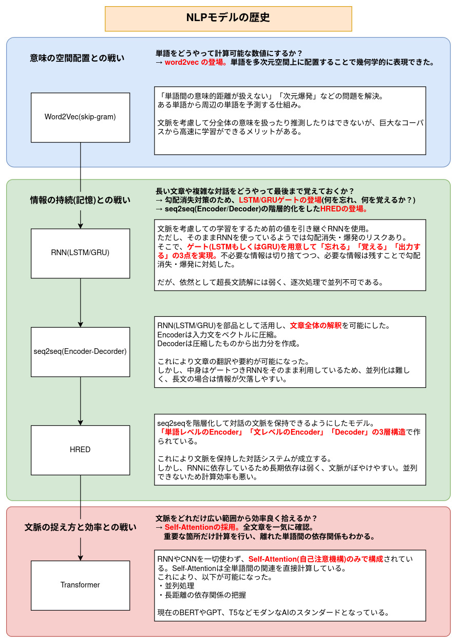 Transformer よりも前のモデルには、単語間の関連を理解するための入力仕様が用意されている。